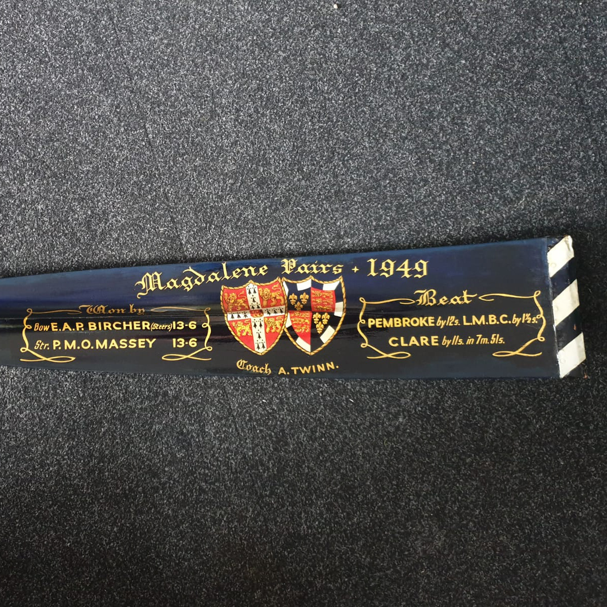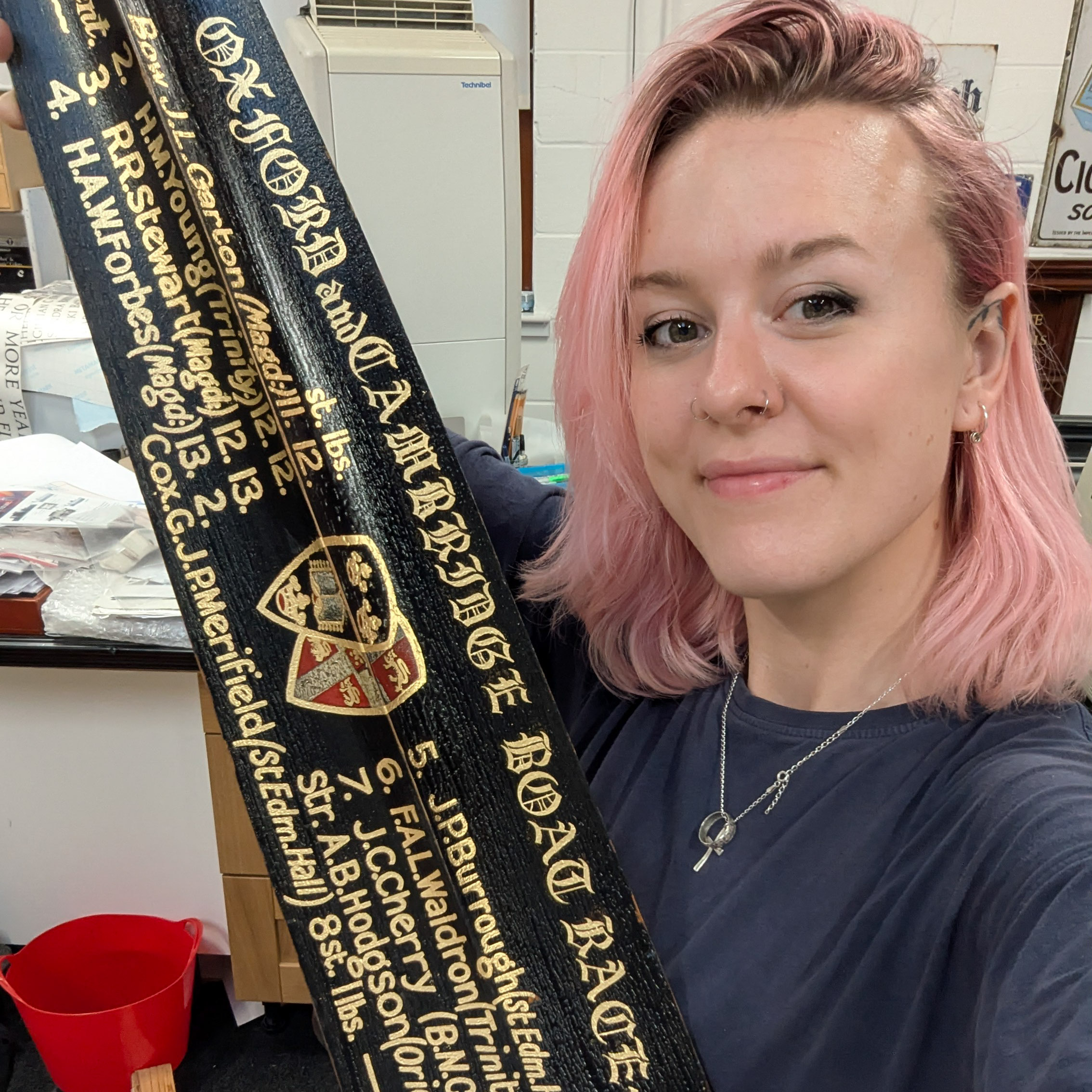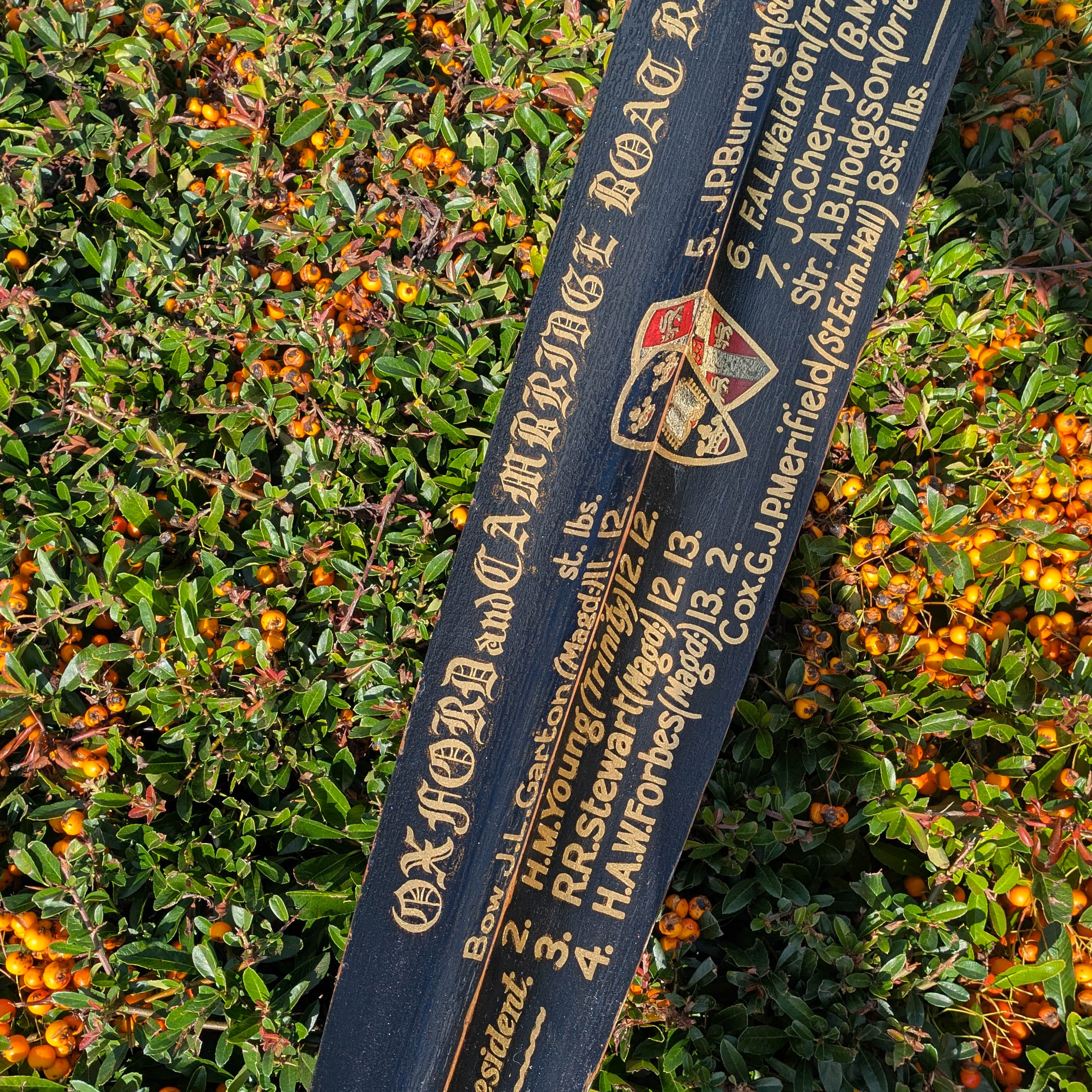 Oars have long been decorated to commemorate competitions and the names of the rowing team. Gold leaf and enamel paint can be used to decorate oars, producing a beautiful way to celebrate the sport.